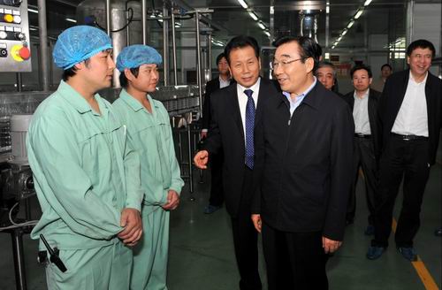 On October 8th, the first working day after the National Day holiday, Mr. Zhang qingli , secretary of provincial Party committee visited HOPEFULL accompanied with Mr. Jing Chunhua, member of the standing committee and the secretary-general of the provincial party committee, Mr. Zhao Shihong, Lang Fang municipal party committee secretary, Mr. Wang Aimin, mayor of LangFang city and Mr. Zhang Jinbo municipal party committee secretary. Mr. Zhang has visited the refining workshop, modern food logistics and the filling workshop on his investigation tour and also greeted the company employees.